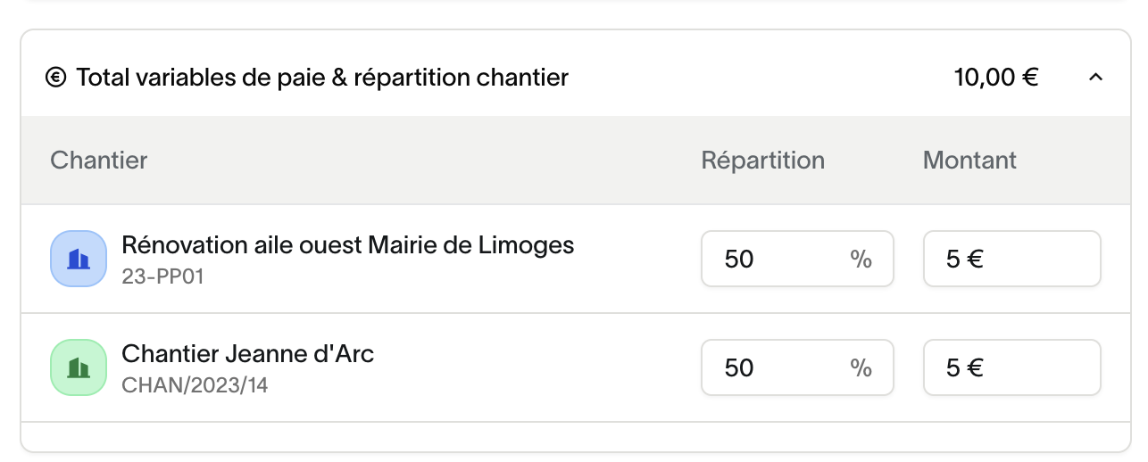 Si un intervenant travaille sur un seul chantier → 100 % du coût est imputé à ce chantier.