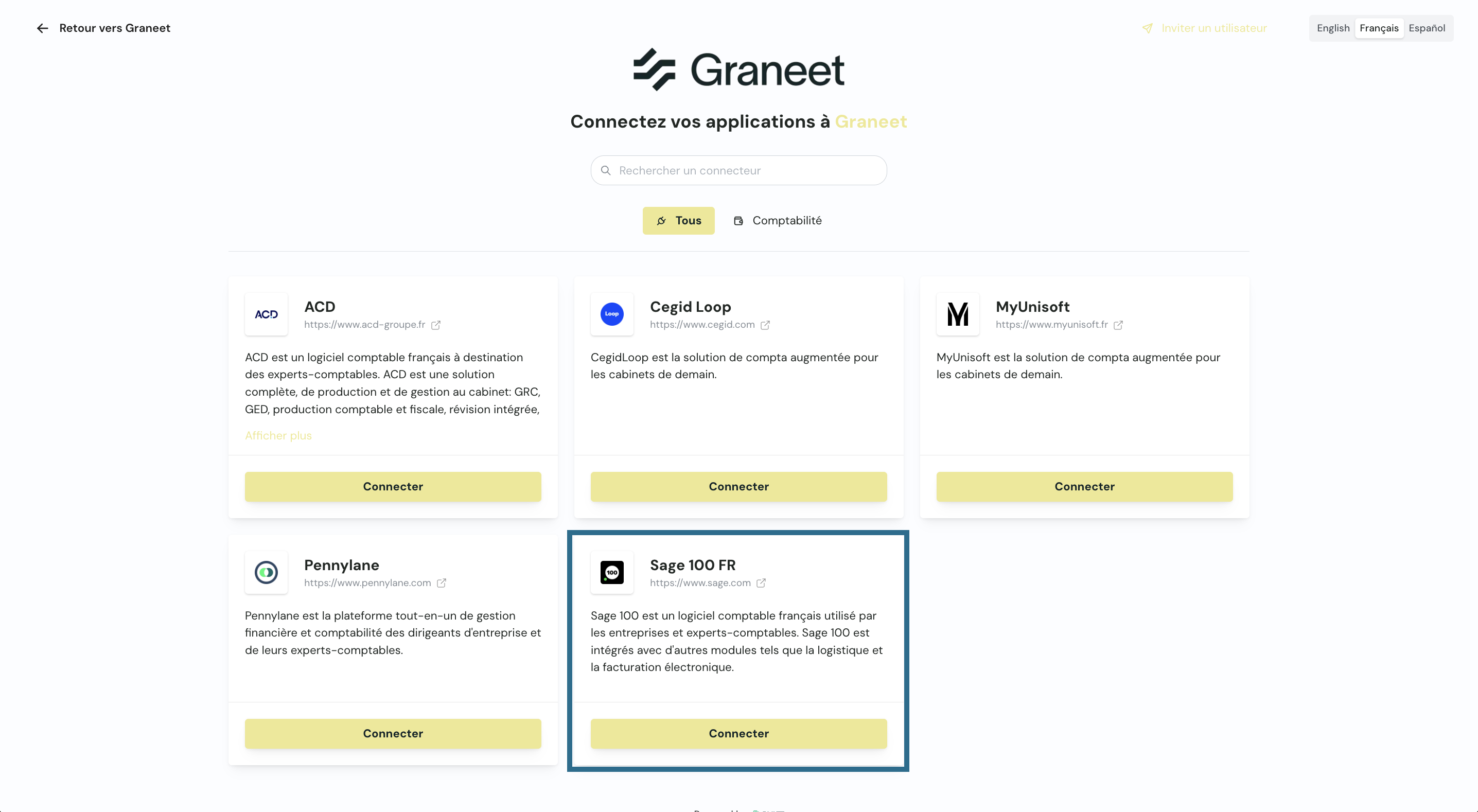 Connexion de Sage 100 à Graneet
