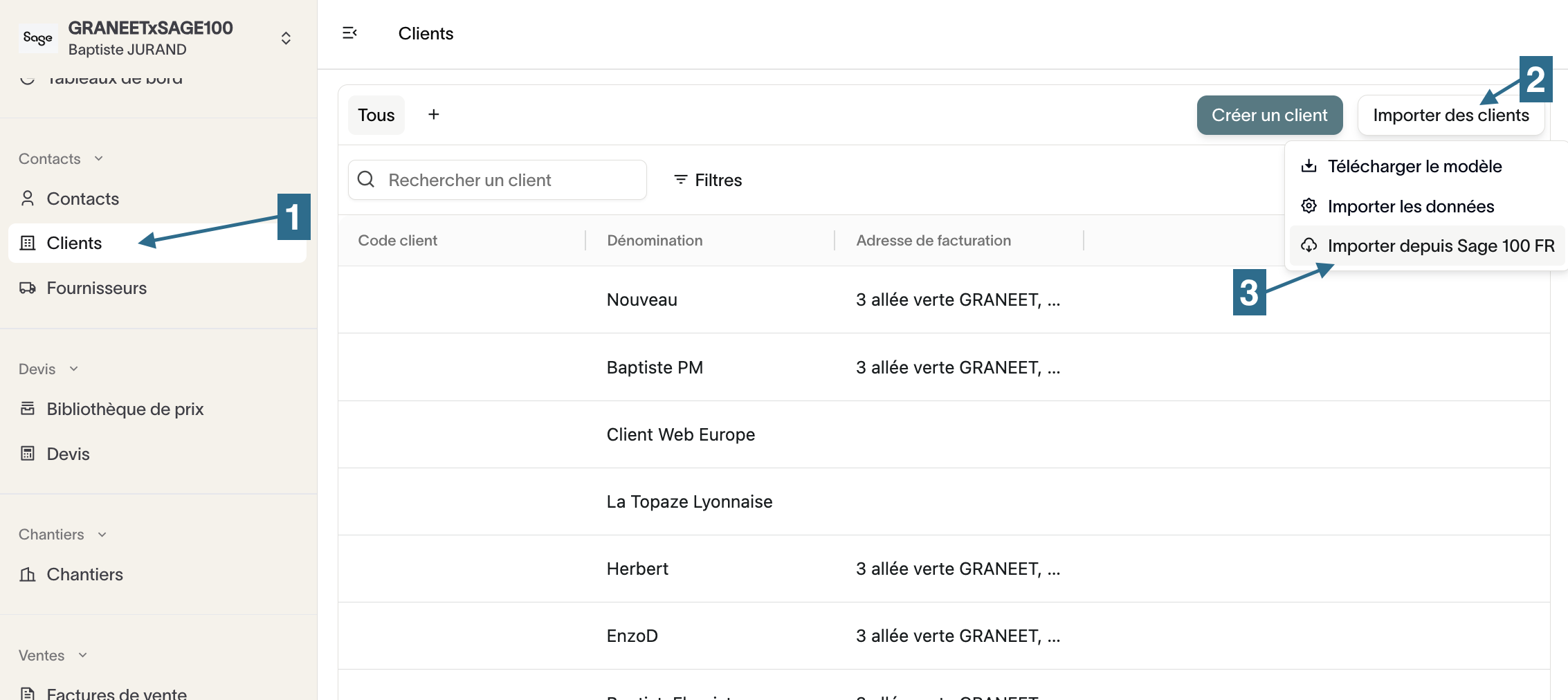 Importer vos clients et vos fournisseurs enregistrés sur Sage 100 vers Graneet