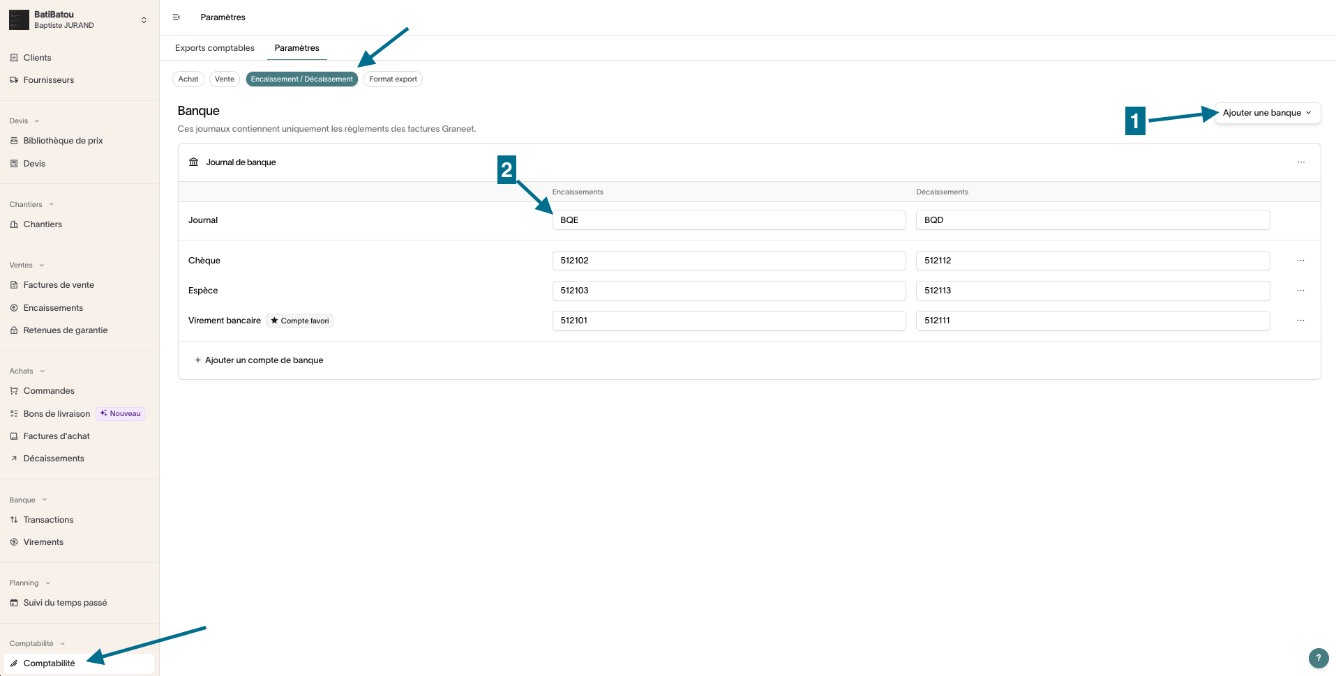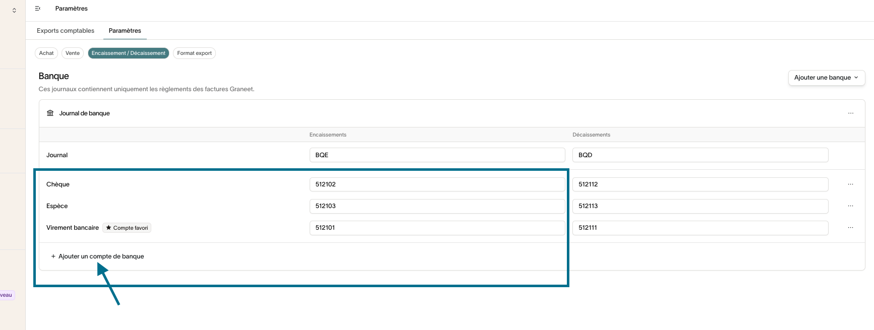 Paramétrage du journal d'encaissement par banque
