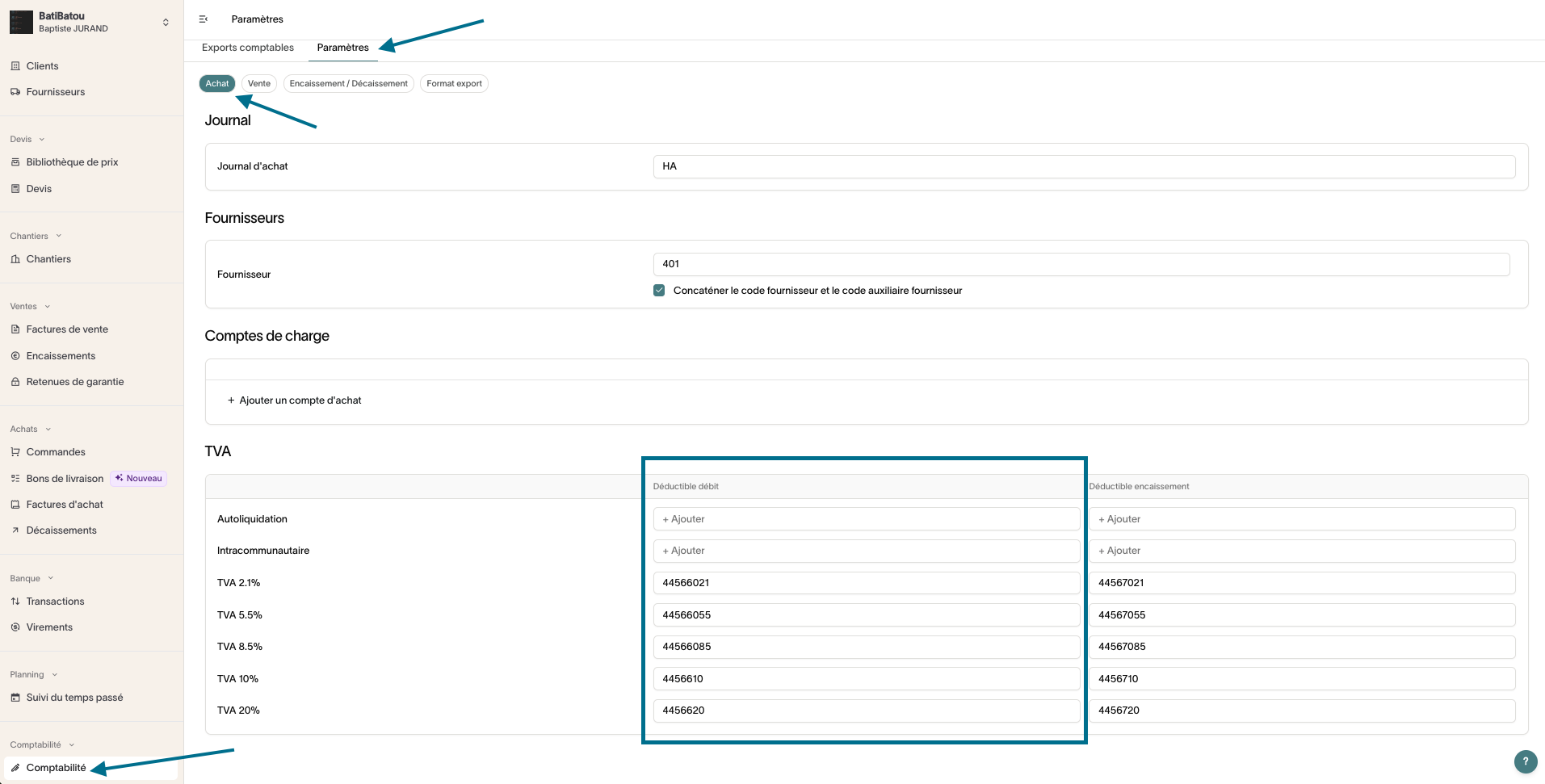 1. Paramétrage comptable des compte de TVA déductible débit sur Graneet