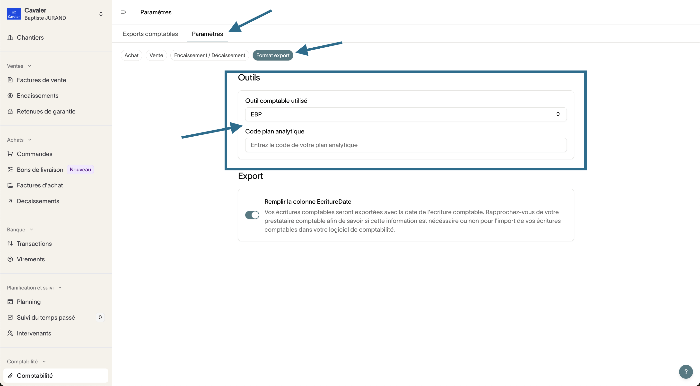 2. Où puis-je faire l’export comptable au format EBP ?