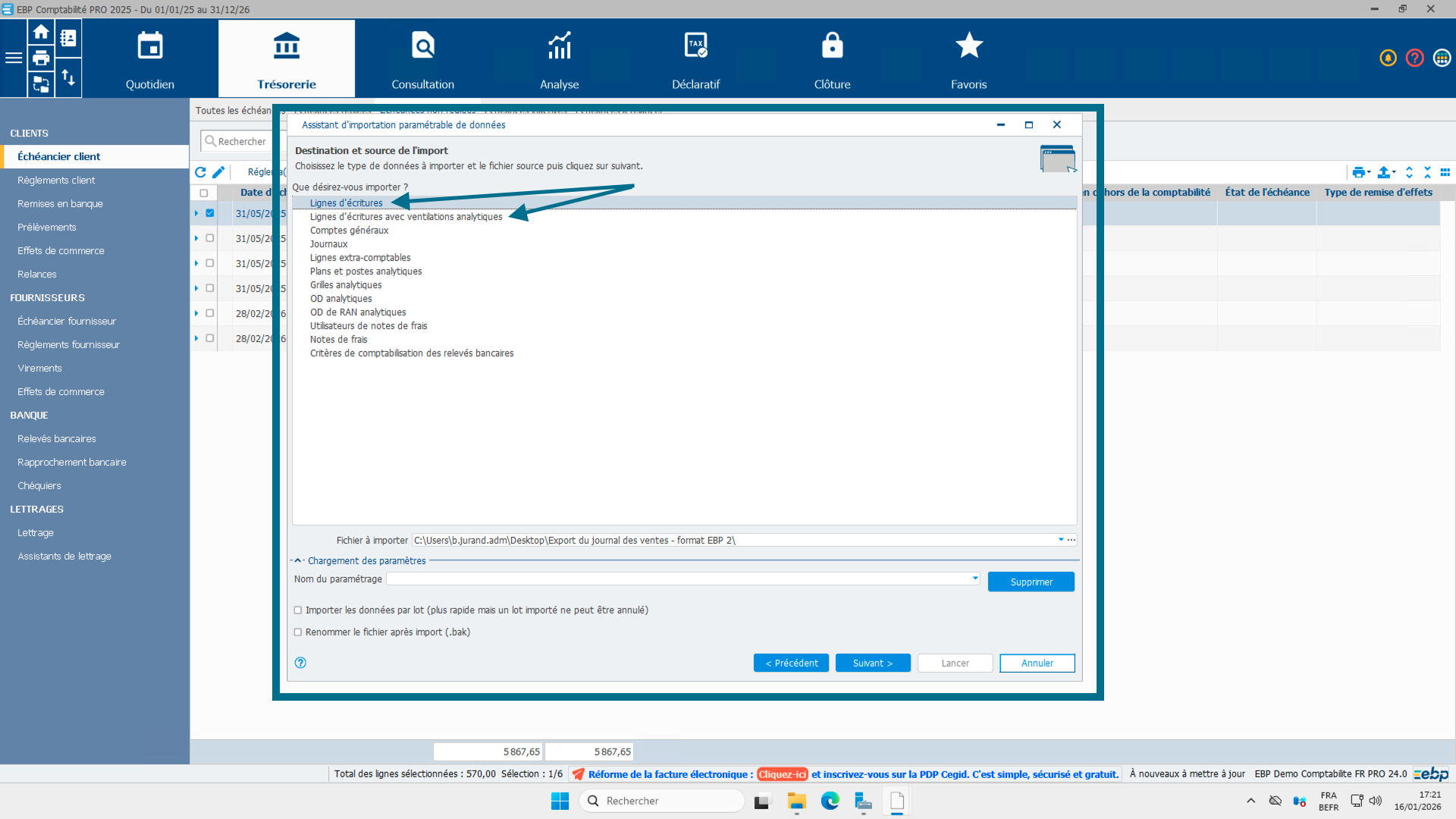 Export EBP avec analytique