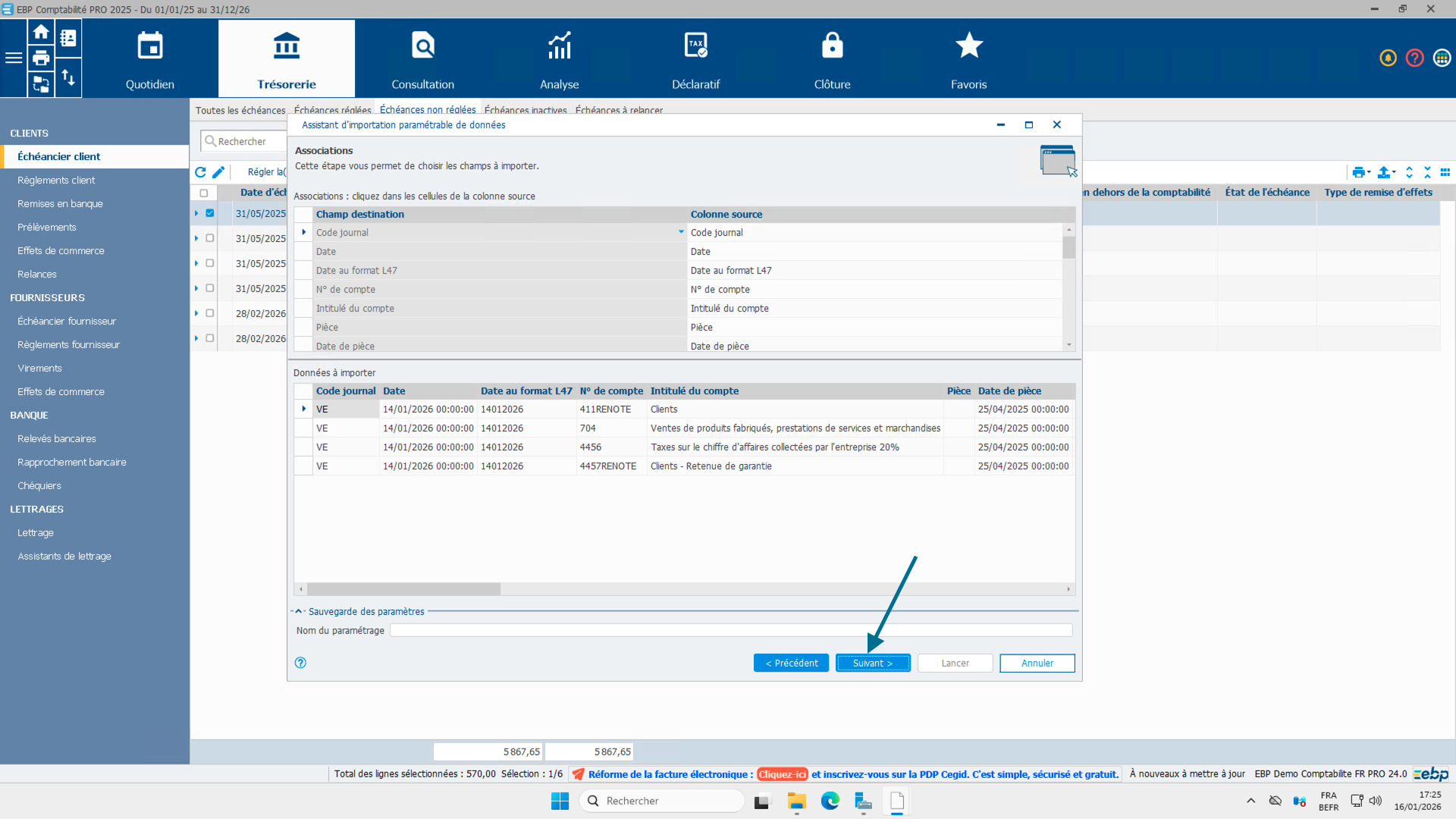 - Une fenêtre d'import s'ouvre, cliquer sur "Suivant"